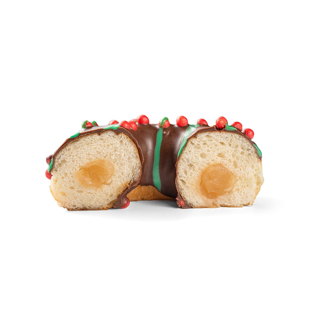 Christmas?! You got that right! Let us meet the holiday season with a Christmas mood and Christmas pastries: the DONUT CHRISTMAS with its apple pie flavoured filling, a true delight for those with a sweet tooth. That is the taste and smell that will remind you of the coziness of home.