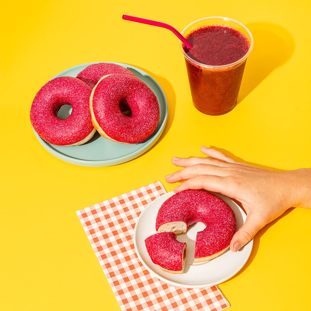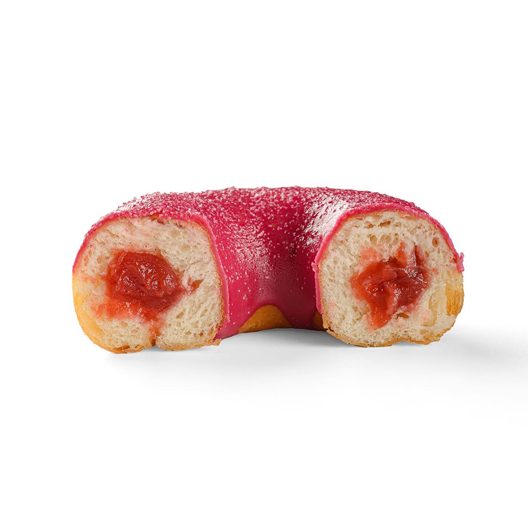 HomeDonutsDonut RING OF SOUR with Strawberry FillingDonut RING OF SOUR with Strawberry Filling Try a new taste experience with a sour doughnut! Subtle sour sprinkles awaken the taste buds, and each bite reveals a combination of sweet strawberry filling and a slightly sour aftertaste, creating a perfect harmony. Related products Donut CAPPUCCINO Berliner with Mango-Passion Fruit Filling Black Donut Pink Donut